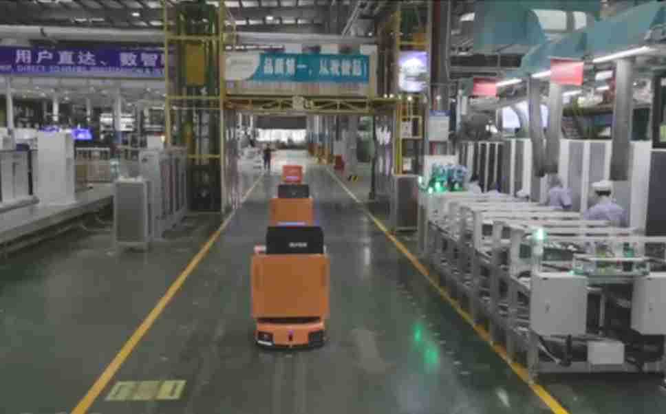 为车载冰箱物流配送打造的智能解决方案,,,,包含产中物流通过潜伏举升AMR搬运至线边,,,,产后成品物流智能仓储,,,,流程包含产中物流智能齐套入库,,,,线边安灯叫料AMR智能配送至线边,,,成品入库、、出库,,通过无人堆高车机器人,,,,智能仓储管理替代人工作业管理,,,,实现更高存储、、、、更高效率、、、更具柔性化的解决方案。。。。